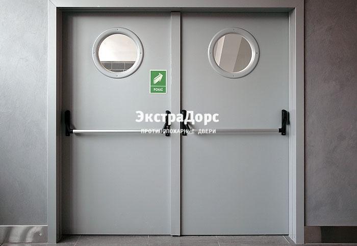 Противопожарная дверь двухстворчатая без порога с иллюминаторами в Долгопрудном