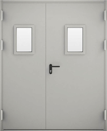 Герметичная дверь противопожарная с порошковым напылением и стеклом