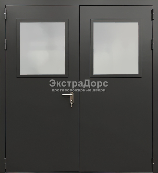 Металлическая противопожарная дверь ДМП-01-60 двупольная серая с замком