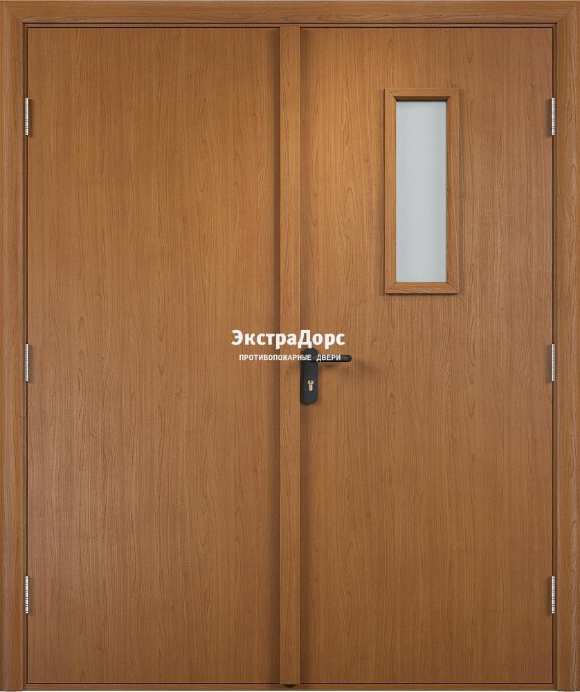 Двупольная противопожарная дверь ДМП-01-30 двухстворчатая со стеклом дуб в Долгопрудном