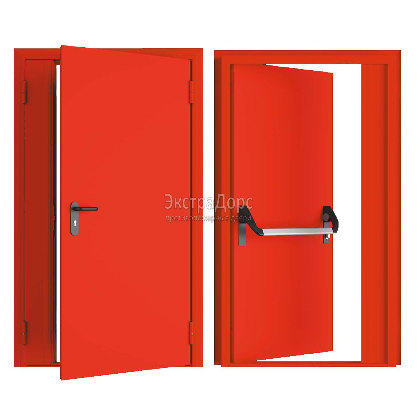 Противопожарная дверь EI 60 полуторная красная газодымонепроницаемая с антипаникой в Долгопрудном