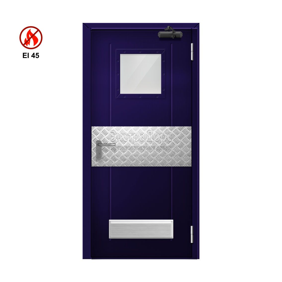 Противопожарная дверь EI 45 ДОП-01-EI45 ДП146 однопольная остекленная с решеткой в Долгопрудном