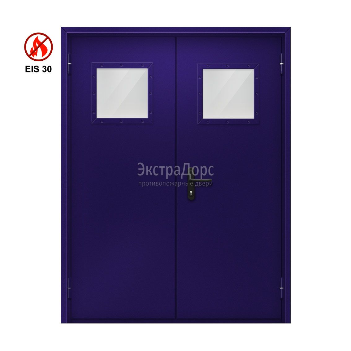 Двухстворчатая огнеупорная дверь EIS 30 ДОП-02-EIS30 ДП87 двупольная остекленная в Долгопрудном