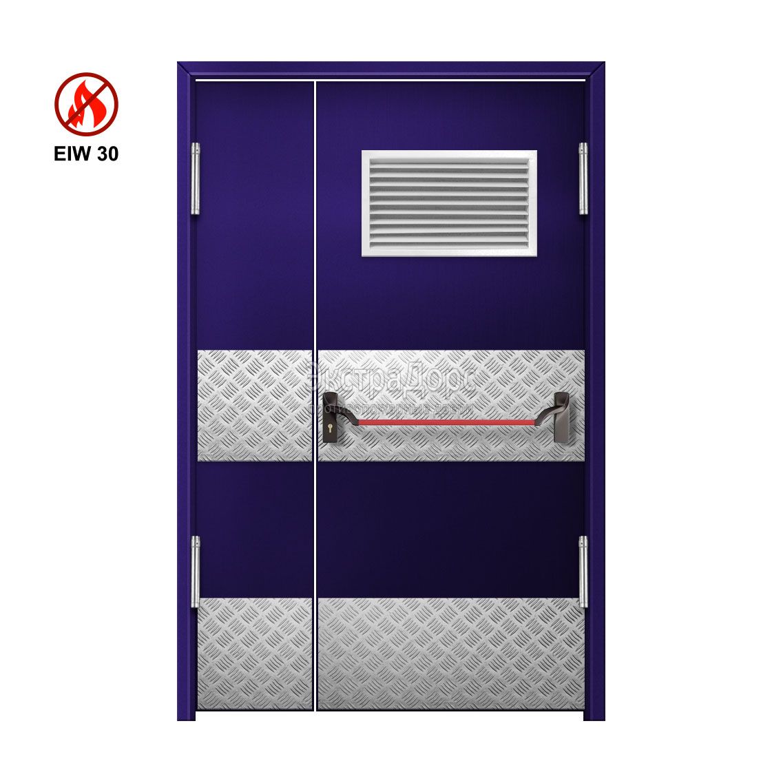 Двупольная огнеупорная утепленная маятниковая дверь с решетками остекленная EIW 30 ДПМ-02-EIW-30 ДП80