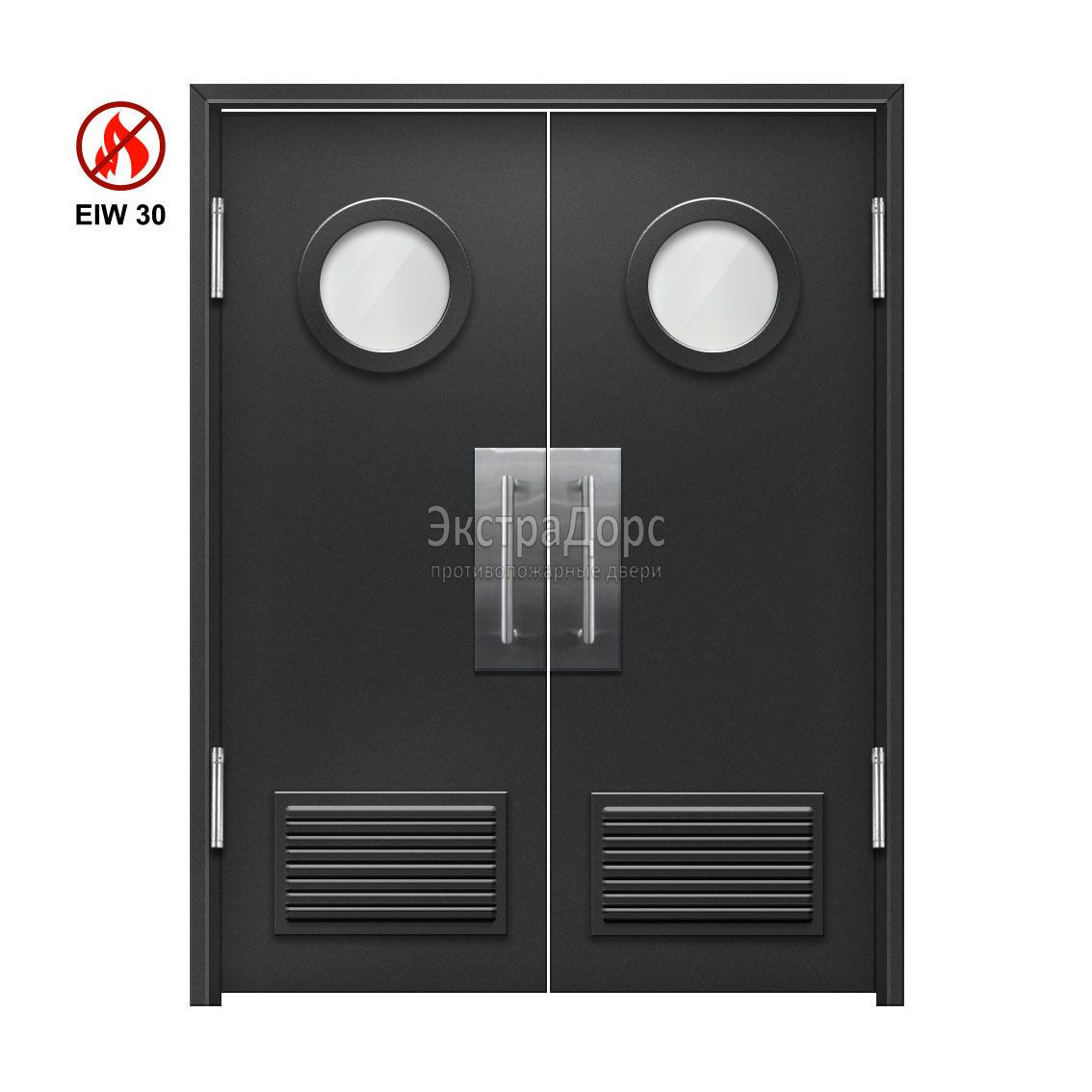 Двупольная огнеупорная утепленная маятниковая дверь с решетками остекленная EIW 30 ДПМ-02-EIW-30 ДП80 в Долгопрудном