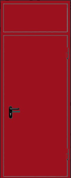 Противопожарная дверь с фрамугой EI-90 – надежное решение для защиты вашего объекта от пожара. Эта противопожарная дверь сертифицирована по классу огнестойкости ei90, что гарантирует эффективную защиту от распространения огня и дыма в течение времени эвакуации. Прочная однопольная конструкция в сочетании с полотном толщиной 55 мм и стальным листом 1,5 мм (2 шт.) создает непреодолимый барьер для огня. Дверное полотно установлено в надежную коробку, а специальный уплотнитель предотвращает проникновение дыма. Размер 200х70 см подходит для большинства проемов. При необходимости мы можем выполнить дверь в любом другом размере под ваш запрос. Стильная отделка и рубиново-красный (ral 3003) цвет делают дверь эстетически привлекательной. Эта противопожарная дверь – идеальное решение для любого помещения. Противопожарная дверь с фрамугой EI-90 - это не просто дверь, это – гарантия безопасности, подтвержденная всеми необходимыми сертификатами. Сделайте правильный выбор в пользу безопасности! Наши специалисты помогут подобрать оптимальную комплектацию и организуют доставку с последующим монтажом в удобное для вас время.