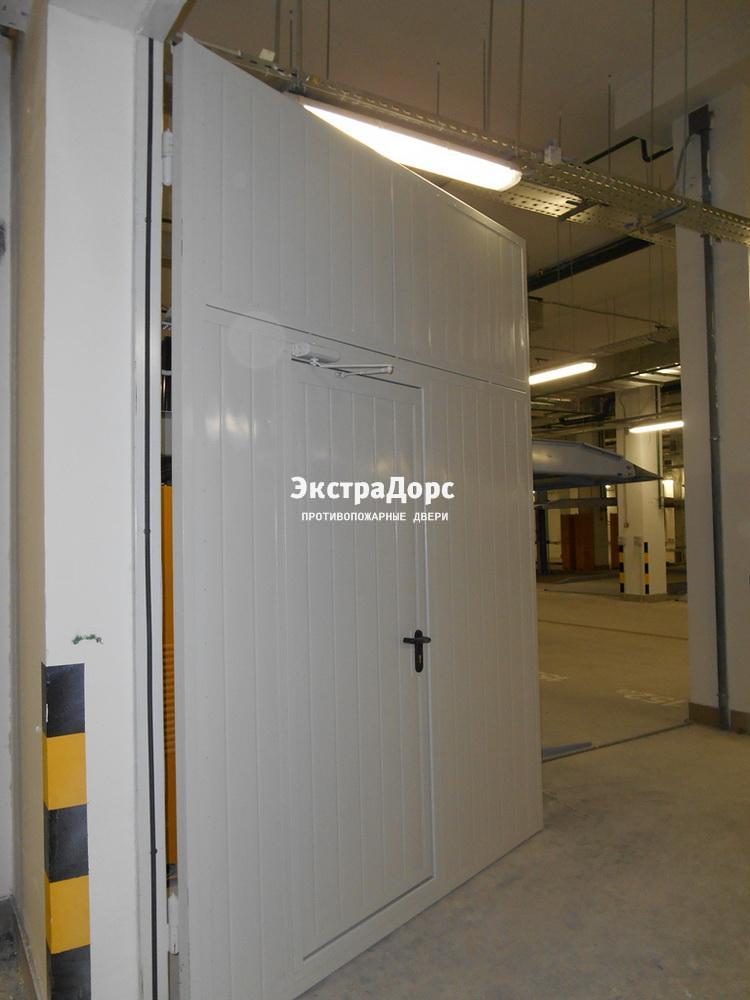Белые распашные противопожарные ворота с доводчиком в Долгопрудном