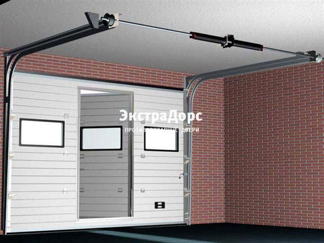 Подъемные противопожарные ворота с окнами и поворотной калиткой в Долгопрудном