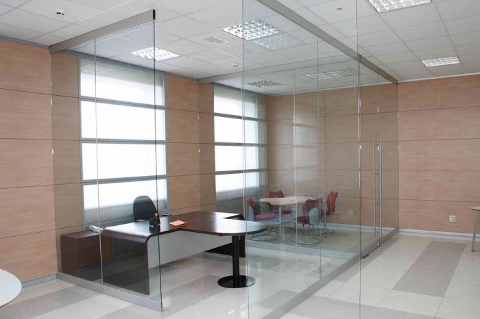 Противопожарная безрамная дверь в переговорную в Долгопрудном